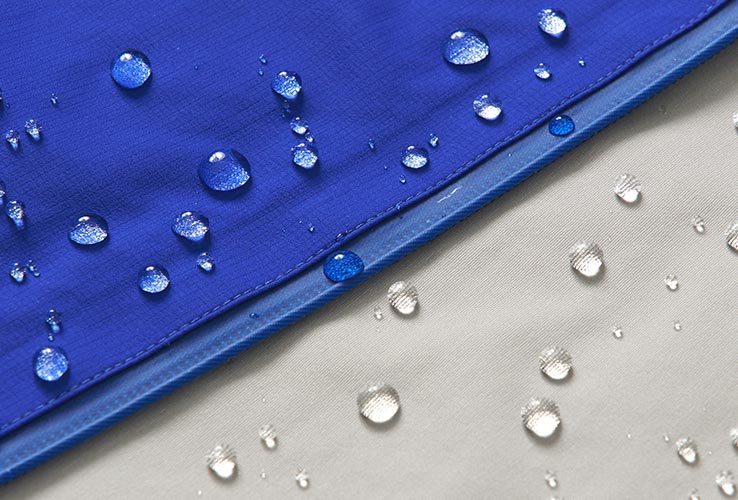 エバーブレス®(エバーブレス®3D、エバーブレス®μを除く)は、生地の表側だけでなく、裏側にも強力な撥水加工を施しています。特に裏撥水は、finetrackならではと言っても過言ではない仕様です。