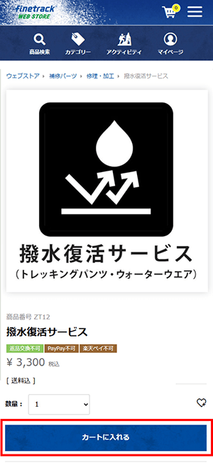 本サービスは株式会社finetrackが製造する製品の再撥水加工を行うもので、日本国内限定のサービスとします。サービス利用にあたっては、当社「メンバーシップ会員」に登録することを必要とします。