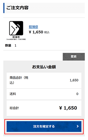 | 費用(税抜) | 一律1,650円(税込)(ご依頼品1点につき2か所まで) ご依頼品1点につき3か所以上の修理の場合は、追加料金をいただく場合があります。 |
