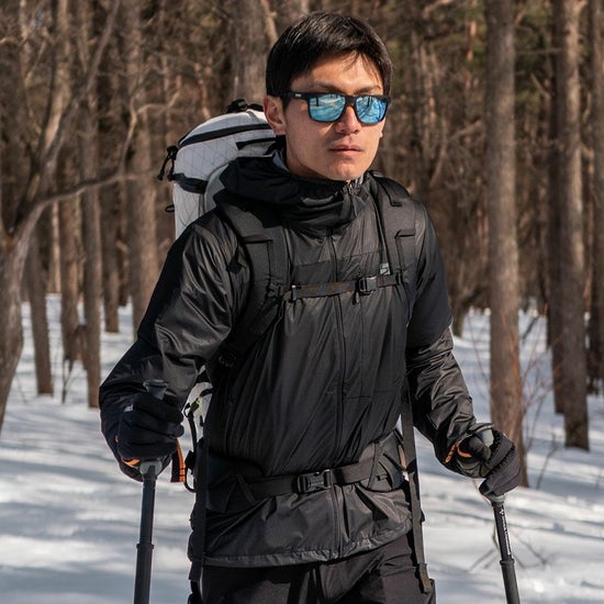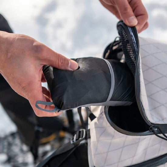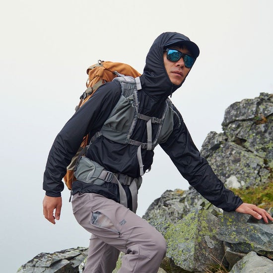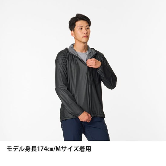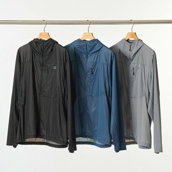 ミニマルなデザインながら、フード内収納のポケッタブル仕様やリンクベント®、風の吹き込みを防ぐ袖口・裾のドローコードなど山岳環境で活きるディテールも充実。
