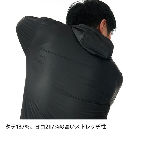 ヨコ217%、タテ137%のストレッチ性と、レイヤリングを想定しつつもダブつきにくいサイズ感により、動きやすさと着心地を両立。L5アウターシェルと重ねることで、防水性の向上と結露の軽減を叶えるダブルシェル®効果を発揮します。