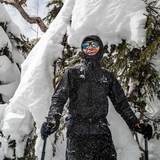 3層の防水透湿生地ながら、驚くほど軽量コンパクト。小雨や小雪時のお守りウェアとしても活躍します。