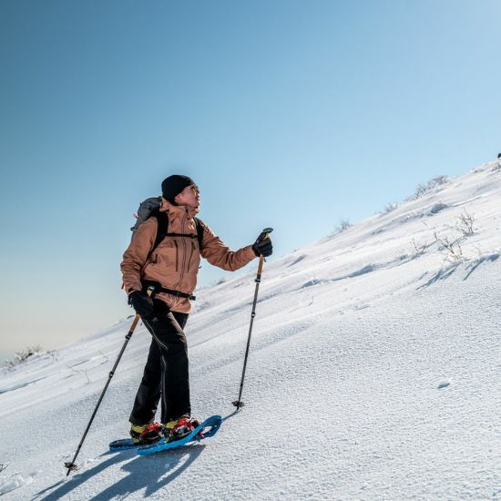 エバーブレス®プリモは、スノーハイクから中級山岳の雪山登山に対応するハードシェル。雪山アクティビティに必要な機能をバランスよく備えます。