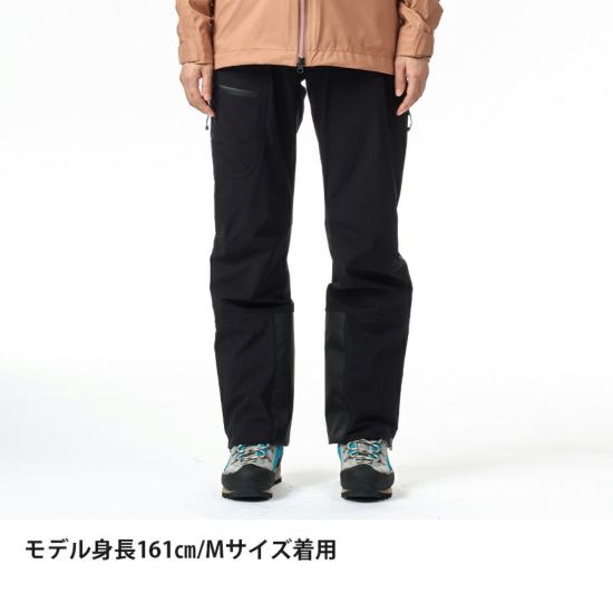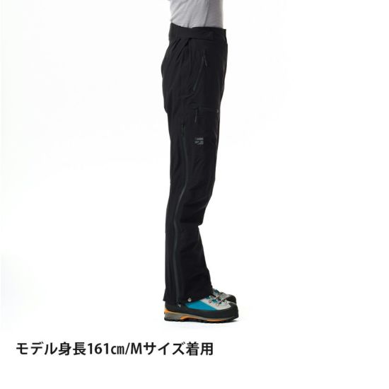 雪山に必要なギミックを各所に過不足なく配置しました。アイゼン使用時の擦れに強いアイゼンガード、グローブを付けたまま調整が容易なウエスト調整機構など、雪山用ハードシェルの基本性能をおさえた造り。