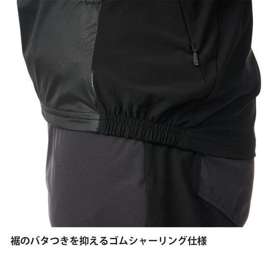 袖口や裾にはゴムシャーリングを施し、風の侵入やバタつきを軽減。ランニング中の集中を妨げません。視認性を高める再帰反射のテープを両腕に、ブランドロゴを右袖後部とフロント左胸に配置し、夜間や薄暗い時間帯の安全性にも配慮しました。