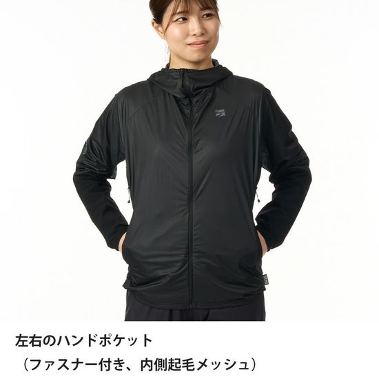 フード・前面・腕部:表:15デニールポリエステルニット、裏:7デニールナイロンニット、中間層:エバーブレス®μ(ミュー)