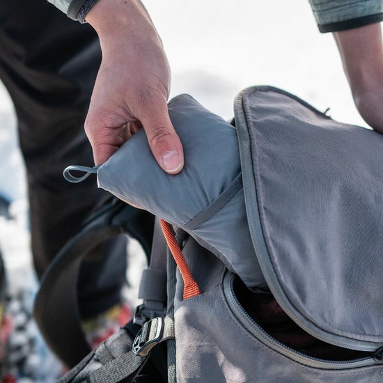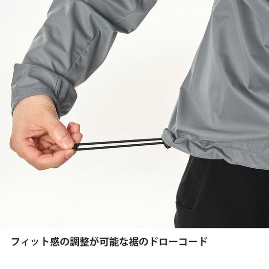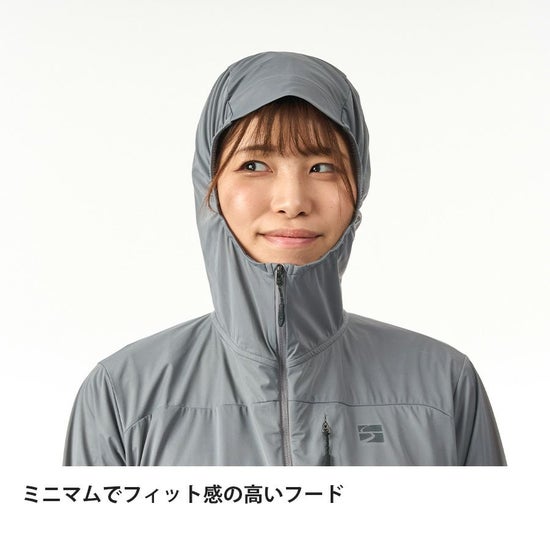 ミニマルなデザインながら、フード内収納のポケッタブル仕様やリンクベント®、風の吹き込みを防ぐ袖口・裾のドローコードなど山岳環境で活きるディテールも充実。