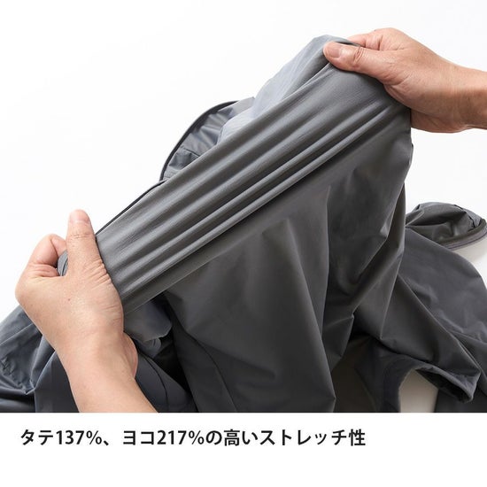 ヨコ217%、タテ137%のストレッチ性と、レイヤリングを想定しつつもダブつきにくいサイズ感により、動きやすさと着心地を両立。L5アウターシェルと重ねることで、防水性の向上と結露の軽減を叶えるダブルシェル®効果を発揮します。