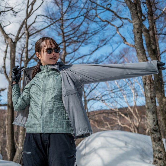 秋~冬はもちろん、残雪期~初夏など発汗が多いシーズンや、運動量の多いアクティビティまで、広範なシーンに手放せなくなる一枚です。