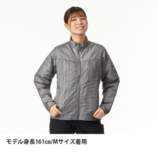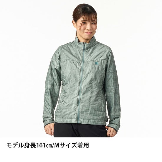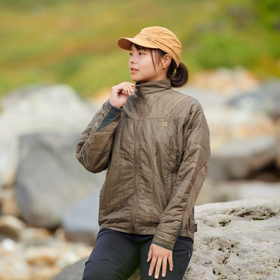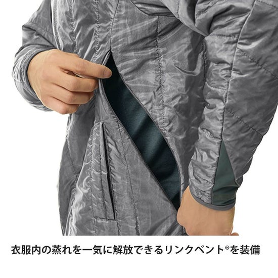 保温素材として独自開発の「ファインポリゴン®」を封入。汗・水・雪・結露などで濡れた際もロフトを維持し、保温力を確保できます。