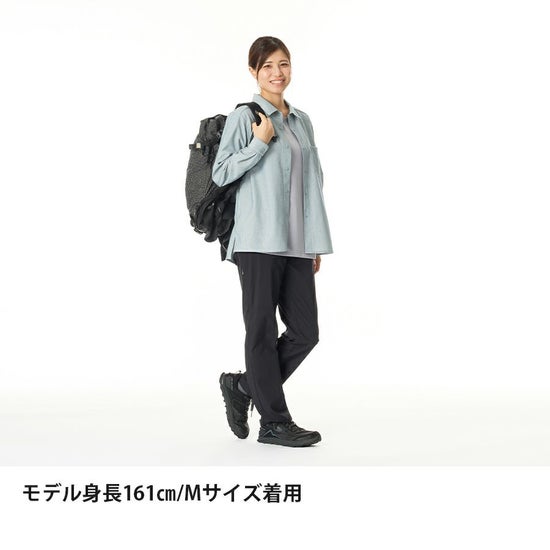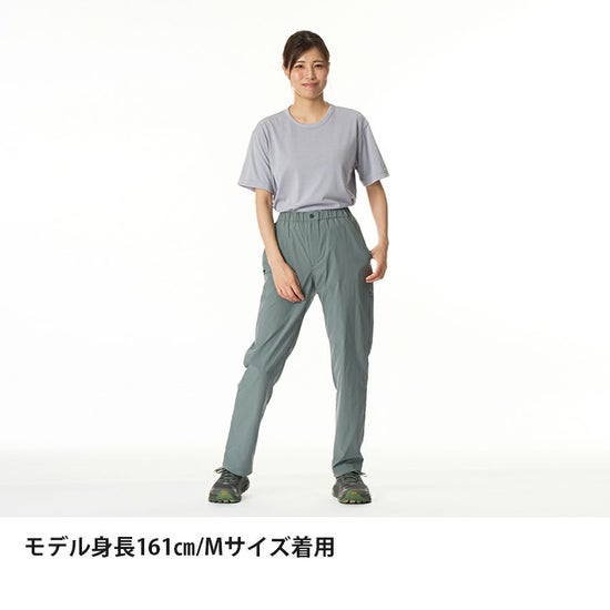 軽量かつ極薄手の生地に、適度なゆとりを持たせたリラックスシルエット。腿まわりにゆとりを持たせつつ裾にかけてややテーパードに。動きに追従し、風が通りやすい。暑い時期の行動でも、軽やかな穿き心地が続きます。