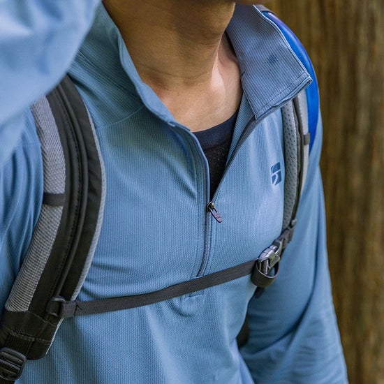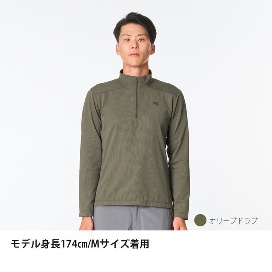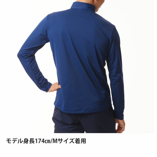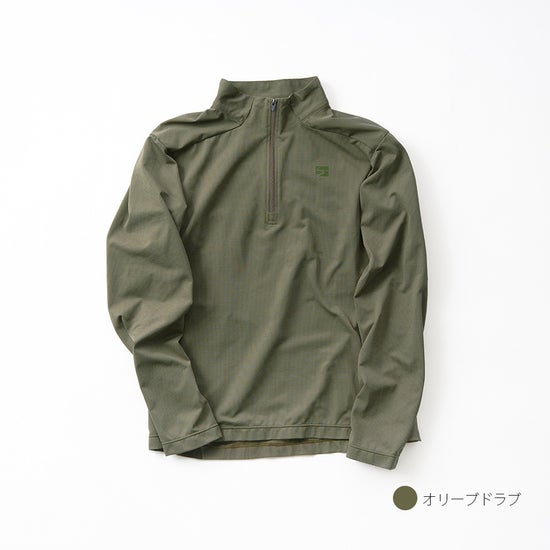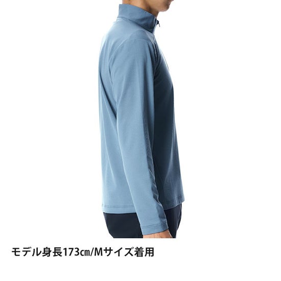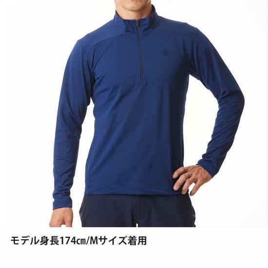 フロントジップを開放することで温度調節が可能で、襟が首元の日よけになるジップネックです。