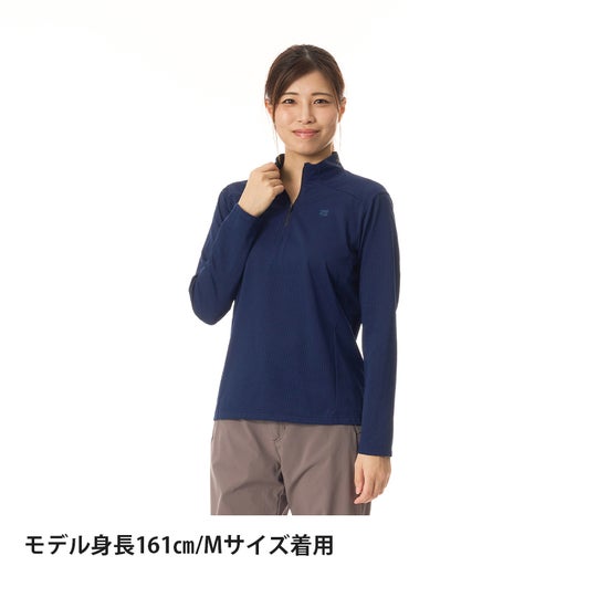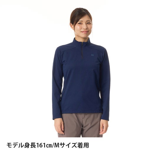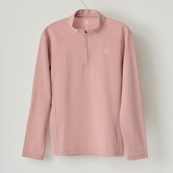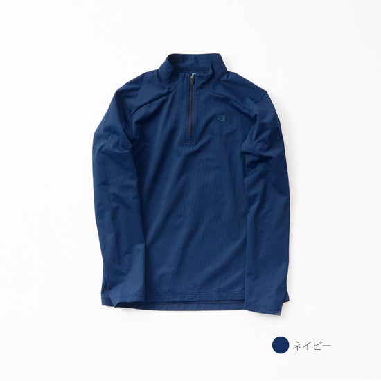 フロントジップを開放することで温度調節が可能で、襟が首元の日よけになるジップネックです。