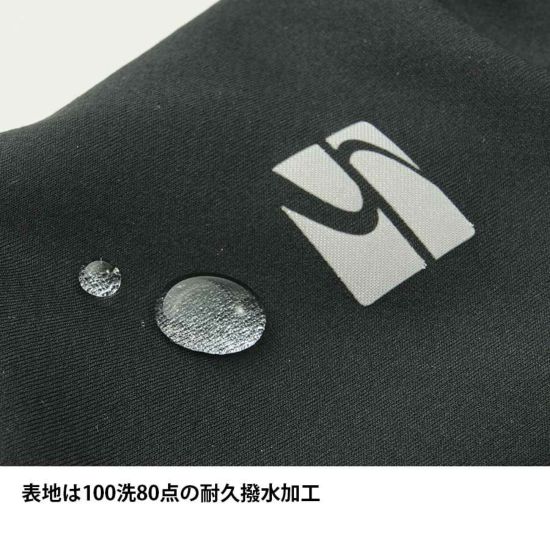 表地は100洗80点の優れた耐久撥水性で雪や雨による濡れを軽減します。