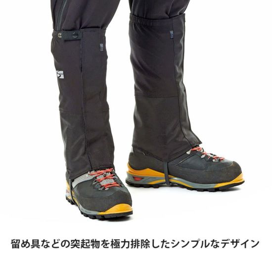 ゲイター外側は留め具など引っ掛かりの原因となる突起物を極力排除したデザインで、破損や転倒のリスクを軽減。