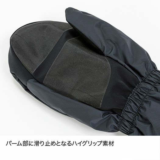 アウターグローブの上から装着可能なサイズで仕上げ、パーム部に滑り止めのハイグリップ素材を採用。雪上での操作性がよく、高い保温力を備えながら、濡れによる保温力の低下を軽減します。