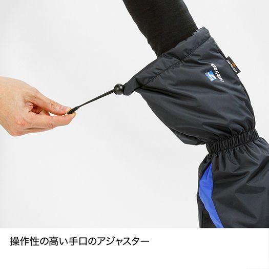 | 素材 | 表地(掌以外):ナイロン100%(PUコーティング) (掌)表:ナイロン91%、ポリウレタン9% (掌)裏:ポリエステル100%(PUラミネート) 裏地(掌以外):ナイロン100% (掌):ポリエステル100% 中綿:ポリエステル100%(ファインポリゴン®) |