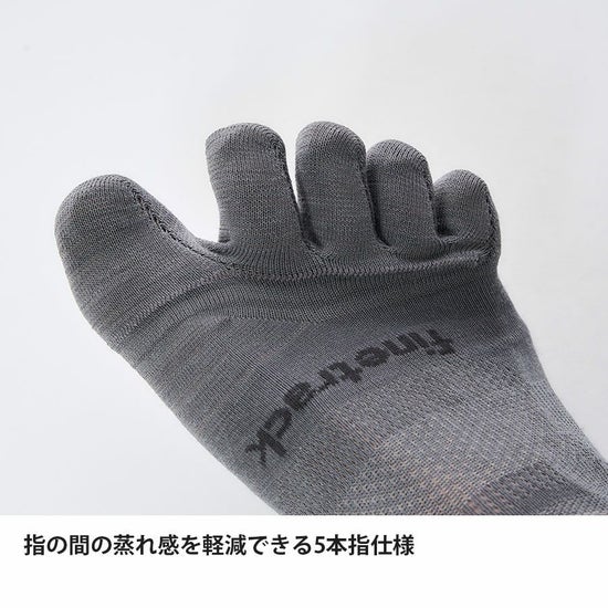 「5本指クルー」は薄手ながら高いフィット性と適度なクッション性を実現。トレイルランニングや自転車、暑い時期のデイハイクなどで使いやすいベーシックなタイプの5本指モデルです。