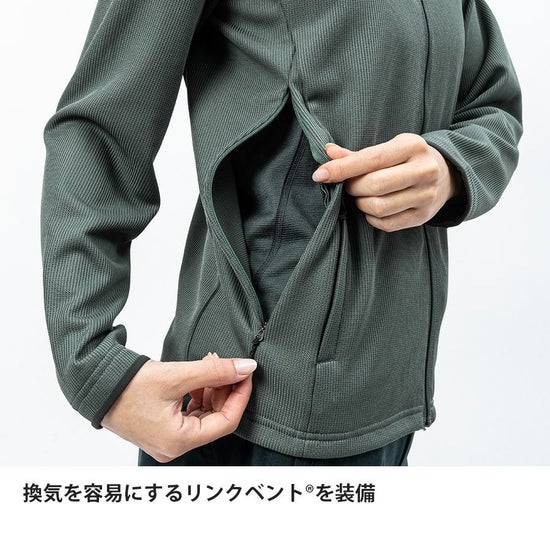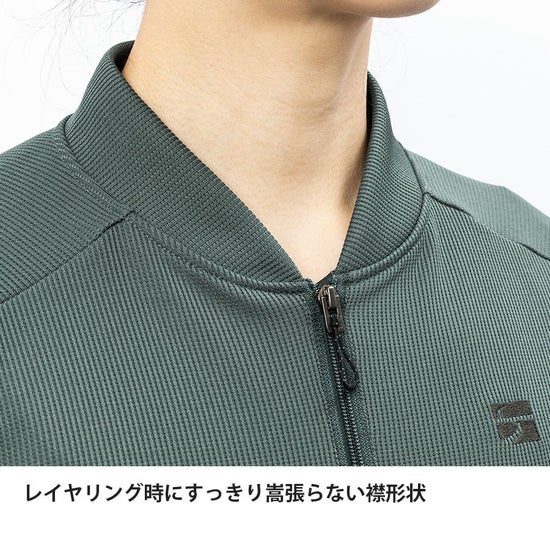 吸汗蒸散性を高いレベルで実現したドラウト®構造生地により、行動中の汗濡れや蒸れを抑えながら、適度な保温性を発揮します。
