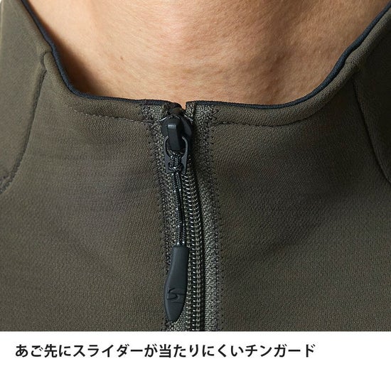 フロントファスナーには、生地同士の突合せで縫製する「TPS縫製(FTPS縫製)」を採用しました。本体生地とファスナー地とを重ねないため、その分柔らかく、快適な着心地です。レイヤリングの際にごわつきにくくなっています。