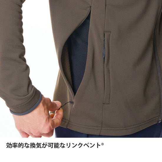 中厚手で保温力と通気性の優れたバランス、多量の汗に対応する汗処理能力を備えます。「汗を処理できるから持続する温かさ」が特長のミッドレイヤー。秋や残雪期、運動量の多い冬のアクティビティに最適です。ヘビーユースに応える半永久吸汗とタフに使用できる生地表面の強度を備えます。