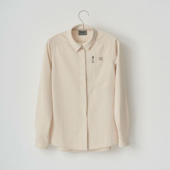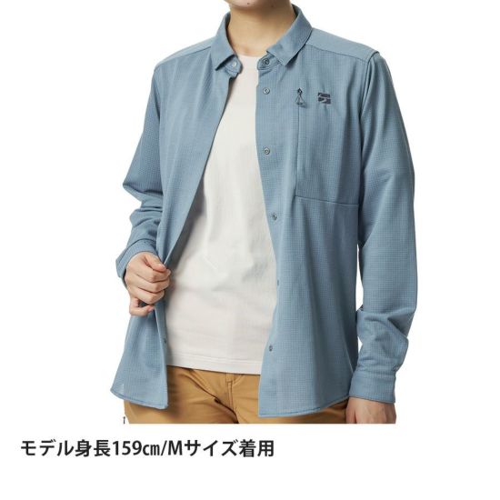 また、腕まくりしやすい袖口、片手で操作しやすい軽量スナップボタン、ファスナー付で収納力に優れたポケットなどアウトドアでの使いやすさと軽さも追求しています。高機能に加えてシャツとしての仕立ての美しさも追求したシンプルデザイン。ベースレイヤー(Tシャツ)の上から羽織ったり、ドライレイヤー®の上に直接レイヤリングしたり、シーンや気候に合わせて活用いただけます。