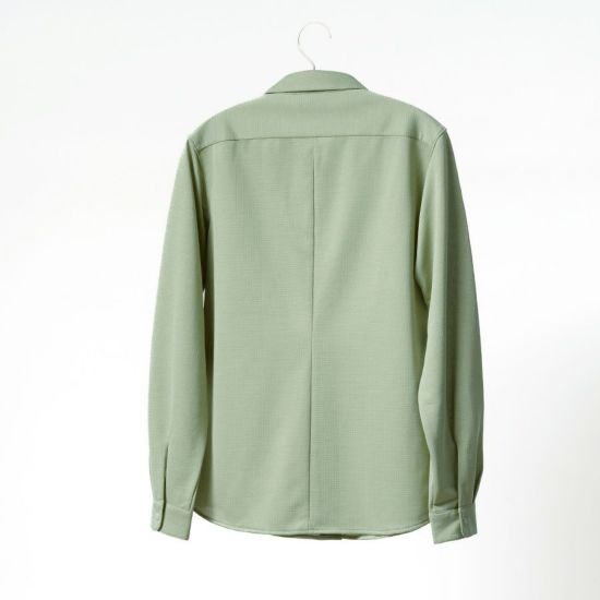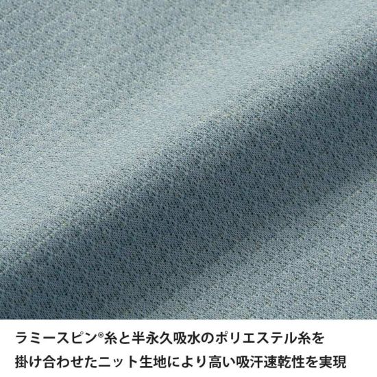 シャツとして一般的な布帛を使わず、ニット地にすることで高い通気性と動きやすさを実現しました。ニット素材には独自素材のラミースピン®糸と半永久吸汗を可能にする特殊ポリエステルをハイブリッドし、ベースレイヤー並みの優れた吸汗速乾性も備えます。