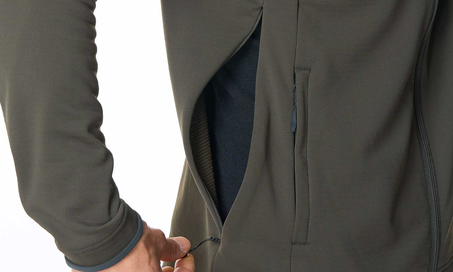 中厚手で保温力と通気性の優れたバランス、多量の汗に対応する汗処理能力を備えます。「汗を処理できるから持続する温かさ」が特長のミッドレイヤー。秋や残雪期、運動量の多い冬のアクティビティに最適です。ヘビーユースに応える半永久吸汗とタフに使用できる生地表面の強度を備えます。