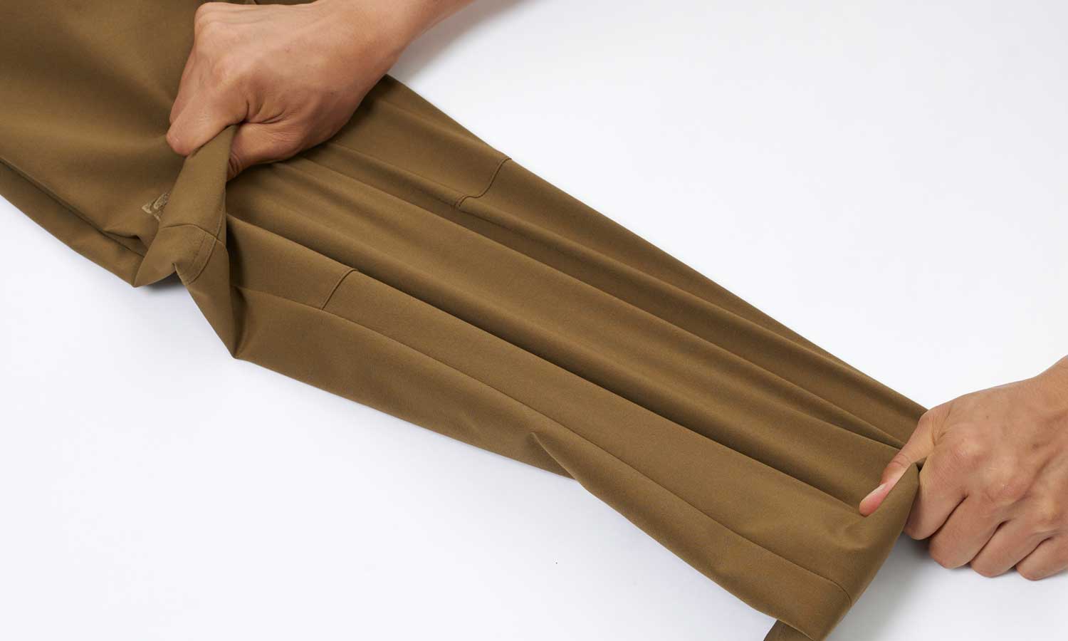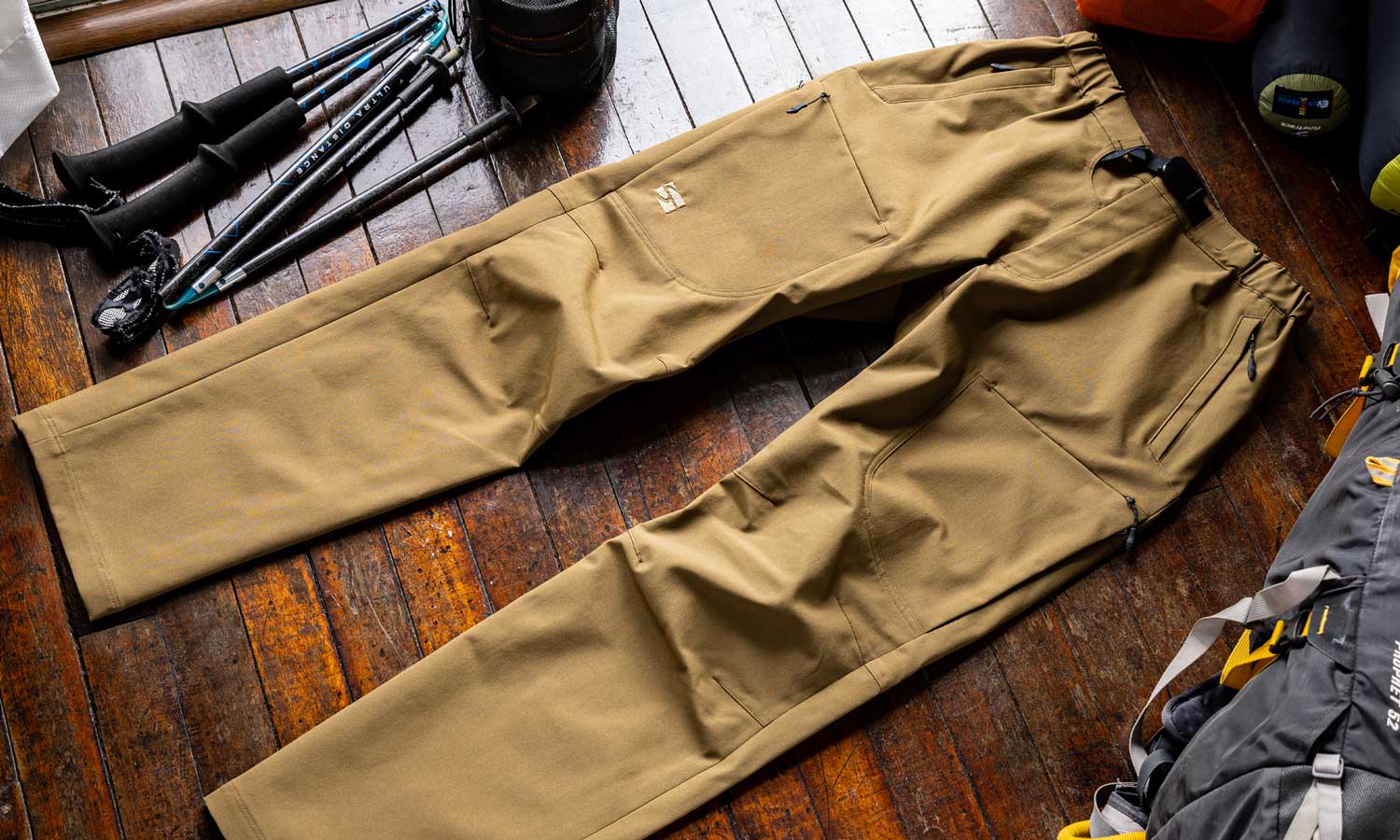 山岳パンツとしての機能とともに、シルエットの美しさにもこだわり、雰囲気のあるパンツに仕上げました。