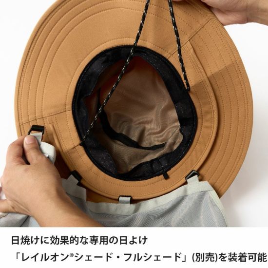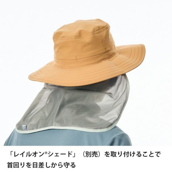 両サイドから後頭部にかけて、ツバ内部に設けている「レイルオン®システム」により、日焼けや熱中症予防に効果的な専用の日よけ「レイルオン®シェード・フルシェード」(別売)を装着することが可能です。
