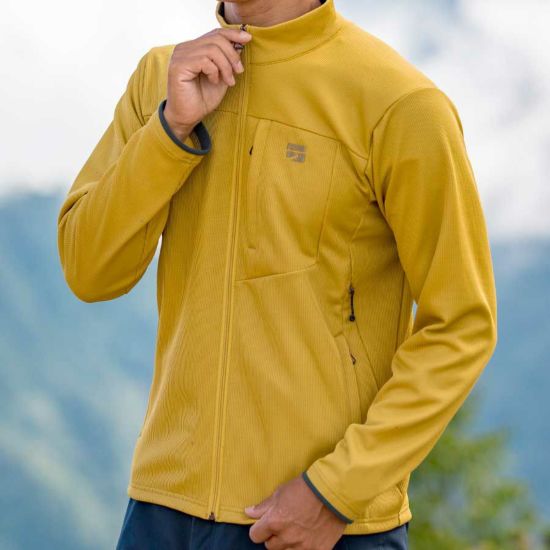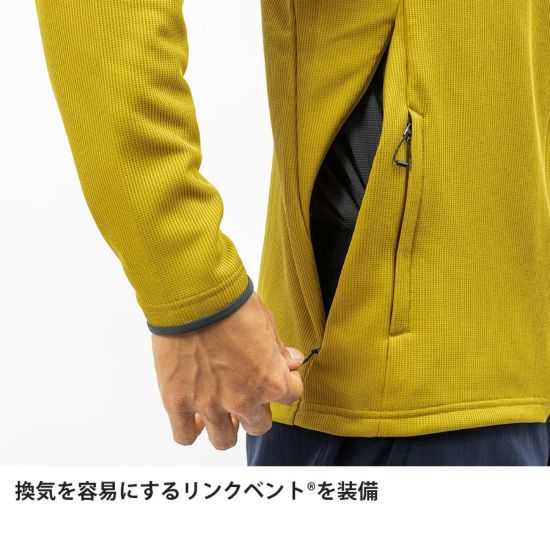 吸汗蒸散性を高いレベルで実現したドラウト®構造生地により、行動中の汗濡れや蒸れを抑えながら、適度な保温性を発揮します。