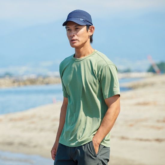 濡らしても速く乾く、繰り返しの着用でも型くずれしにくい、などアウトドアウエアとしての機能性も充分に備えています。