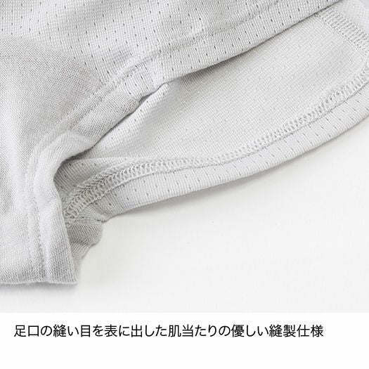 ウエストや足口の縫い目を表に出した肌当たりの優しい縫製仕様。