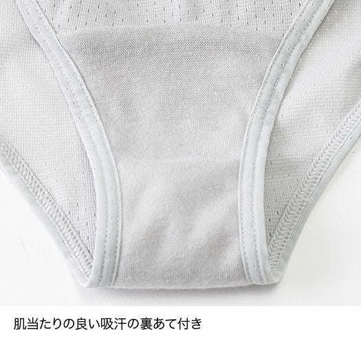 股部分に肌触りの良い吸汗の裏あての付いたショーツです。
