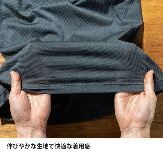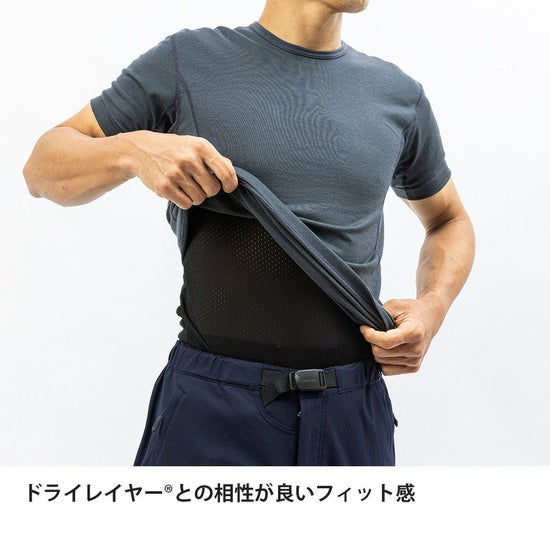吸汗性の高さからドライレイヤー®とのレイヤリングでも、単体でも快適にご使用いただけます。