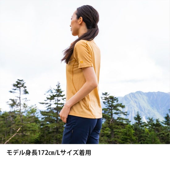 極薄手で非常に優れた吸水拡散力を持つ生地の編み構造と、余裕のある袖口やアームホールといった風の通りやすいデザインにより、かき続ける汗が歩行時に受ける風で乾くほどの高い速乾性を実現。