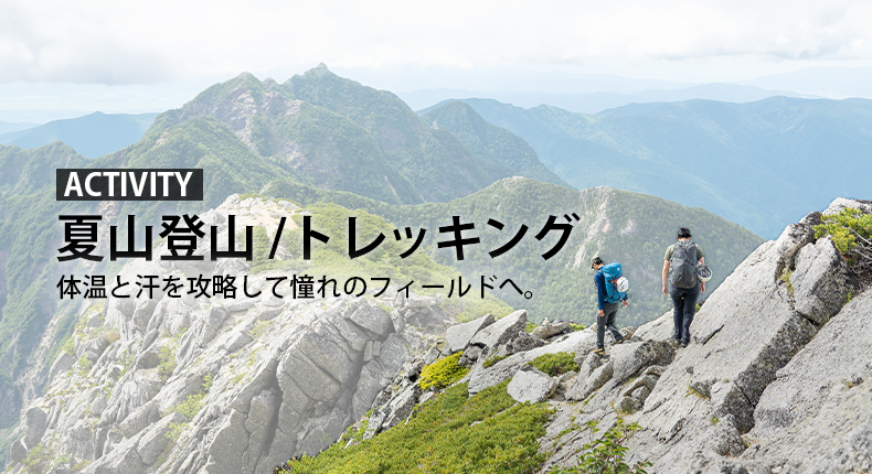 激しい発汗の伴うハイクアップ、吹きつける風で汗の冷える稜線の縦走。夏山は暑いだけじゃない。想像以上に体温の変化が激しい夏山登山にこそ、おすすめのレイヤリングがあります。