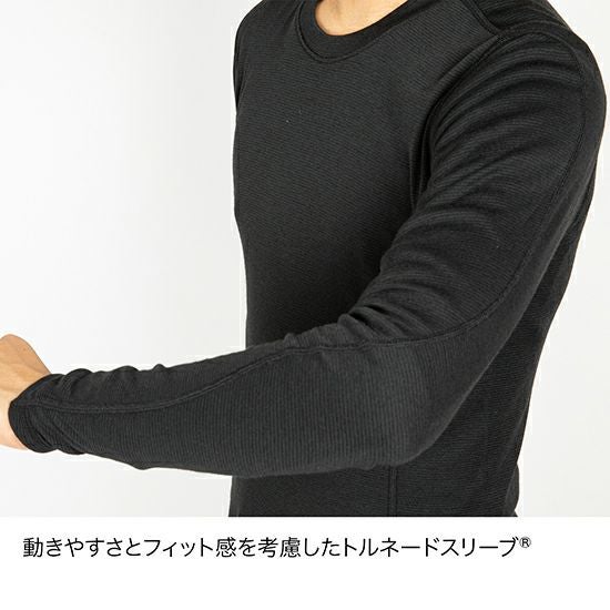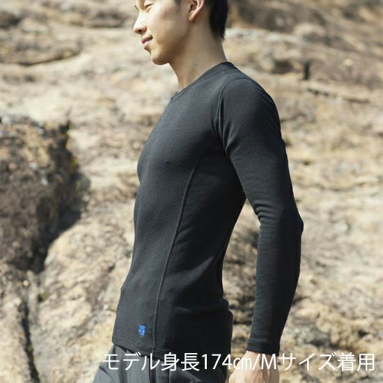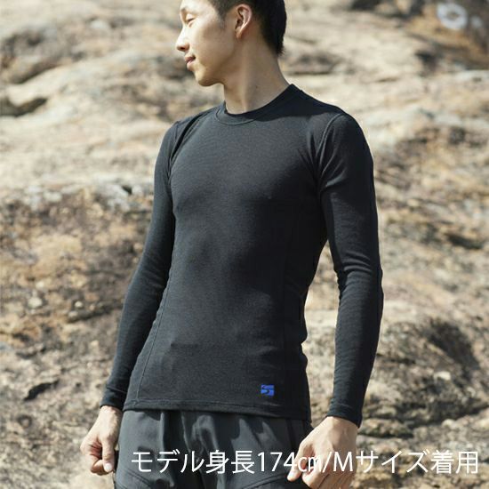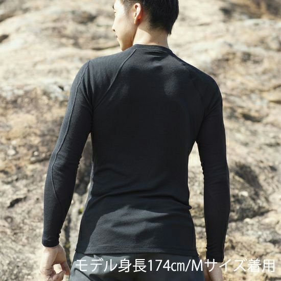 メリノウール本来の保温・調湿性と高機能ポリエステルの吸汗速乾加工を兼ね備えているため、蒸れにくく汗を素早く乾かします。