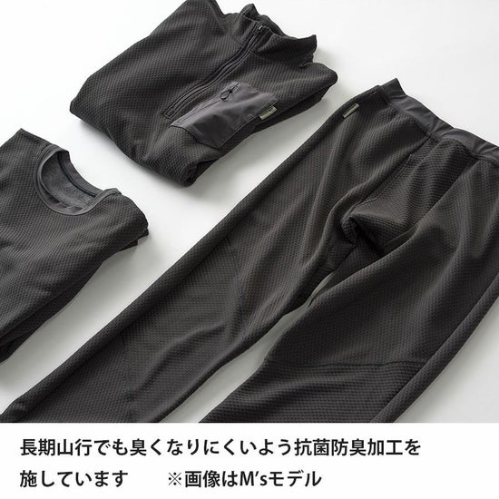 表面側は立体構造、肌面側は微起毛をかけることで、吸汗性と軽量性を損なわずに最大限の保温力を発揮できるように設計。厚手ベースレイヤーの弱点である「乾きにくさ」「重さ」を克服しました。
