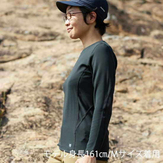 未防縮メリノウールとポリエステルのハイブリッドベースレイヤーです。