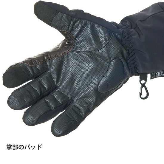 軽い力でアックスなどを握り込める、立体的なデザインに仕上げ、アイスクライミング等でぶつけやすい手の甲小指側、小指、薬指、掌部には、プロテクターを兼ねたパッドが入っています。単体使用のほか、ドライレイヤー®インナーグローブとのレイヤリングもおすすめです。