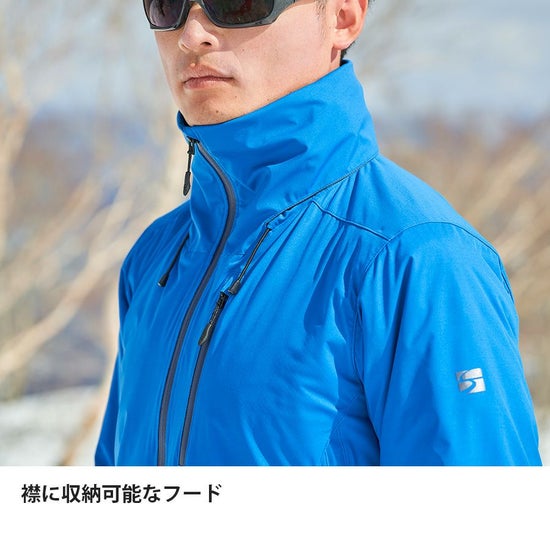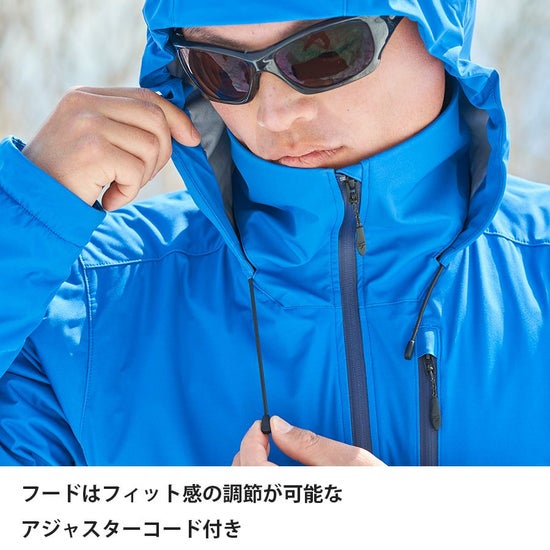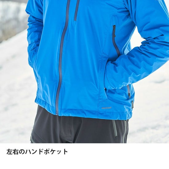 | 素材 | 表地:20デニール66ナイロンニット(ナイロン100%) ポリウレタンラミネート(エバーブレス®エアメンブレン) 裏地:ナイロン・ポリエステル交編メッシュ(ナイロン50%、ポリエステル50%)※フード、襟などに20dポリエステルニットの裏地を備えた3層生地を使用 中わた:ポリエステル100%(ファインポリゴン®) |