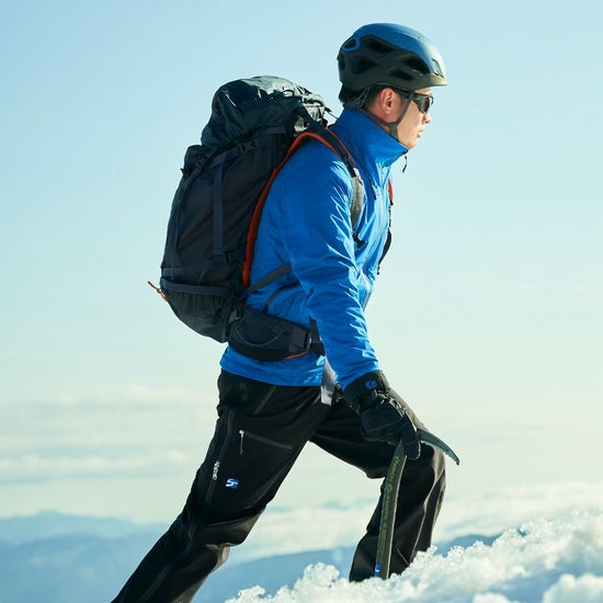 フロウラップ®EXPはハードな冬山でウエアの着脱によるタイムロスやリスクを減らしたいという着想から生まれました。