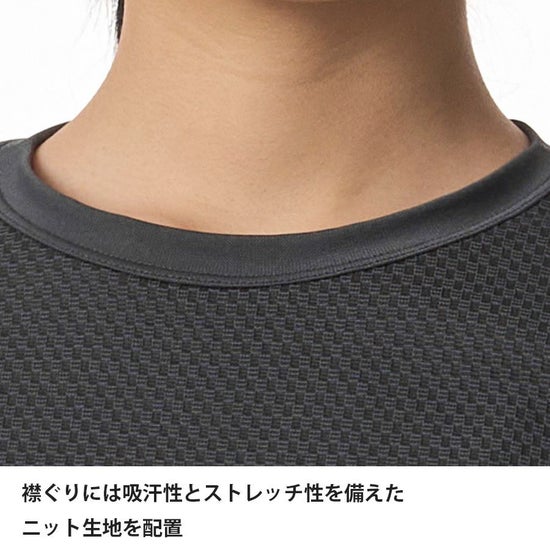 肌面側に吸汗拡散力に優れた独自開発のドラウト®構造を採用。さらに、特殊なポリエステル繊維により、洗濯しても吸水機能が半永久的に持続し、ドライ感を保ちます。