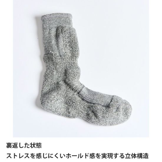※本商品(メリノスピン®ソックス)は、軽さと機能を両立させるために繊細なニット生地を採用しています。繰り返しの摩擦、面ファスナーや枝などのひっかけ、硬い物との接触により、生地に損傷が生じる恐れがありますのでご留意ください。