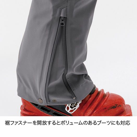 生地強度とストレッチ性を両立したバックカントリースキーヤーのための防水透湿アウターシェルパンツです。ヨコ134%、タテ143%の優れたストレッチ性を持つ70デニールの高強度ストレッチナイロンタフタを使用。両サイドには蒸れを一気に開放できるリンクベント®と、ブーツのボリュームに対応する裾口のファスナーを装備。高い防水透湿性に加え、優れたストレッチ性を実現しているため、バックカントリースキーヤーのダイナミックな動きに合わせたストレスのない追従力を発揮します。