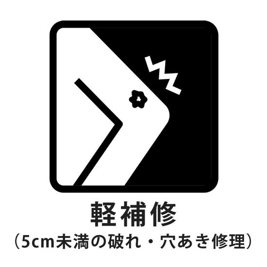 | 損傷の大きさ | 5㎝未満 ※5㎝以上の大きさの損傷や、生地以外のファスナー・パーツ等の損傷は対象外 ※縫製部分やシームテープ、別生地をまたぐ損傷は対象外 ※お手元の商品が対象か否かご不明な場合は、こちら>までお問い合わせください。