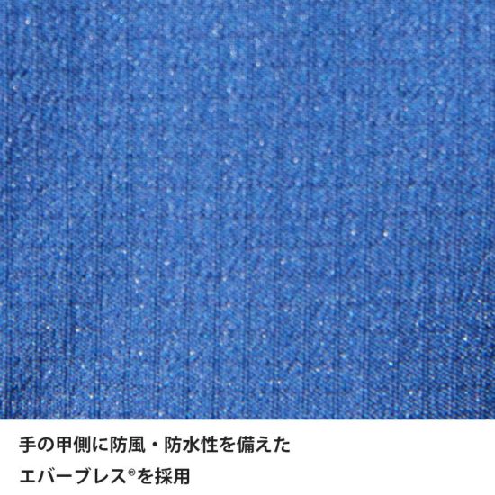 表地甲側に独自開発の防水透湿素材エバーブレス®を、掌側にはハイグリップで耐久性に優れたシンセティックレザーを採用。