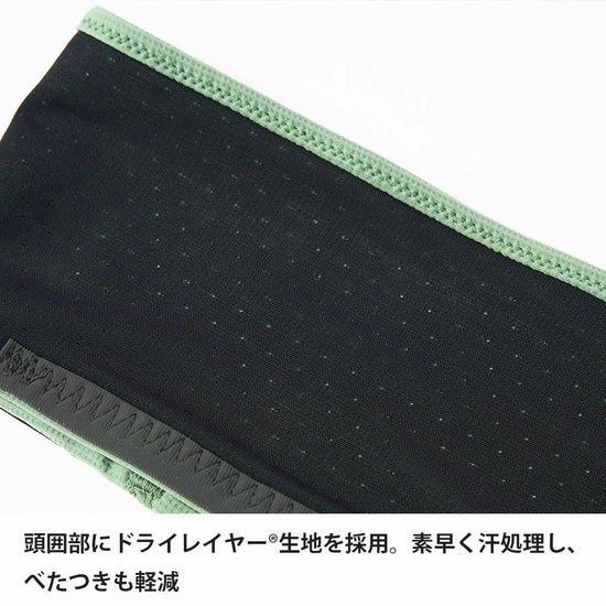 ■頭囲部には肌をドライに保つためのドライレイヤー®クールと汗を吸い上げるドラウト®タフの生地の2枚を重ね使い