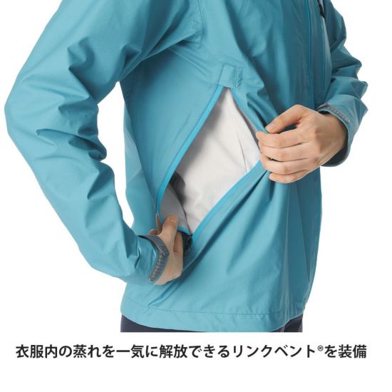 防水透湿素材「エバーブレス®ファブリック」を採用し、最高レベルの防水透湿性を実現。濡れても高い透湿性を維持するため、降り続く雨の中の長時間行動に快適です。